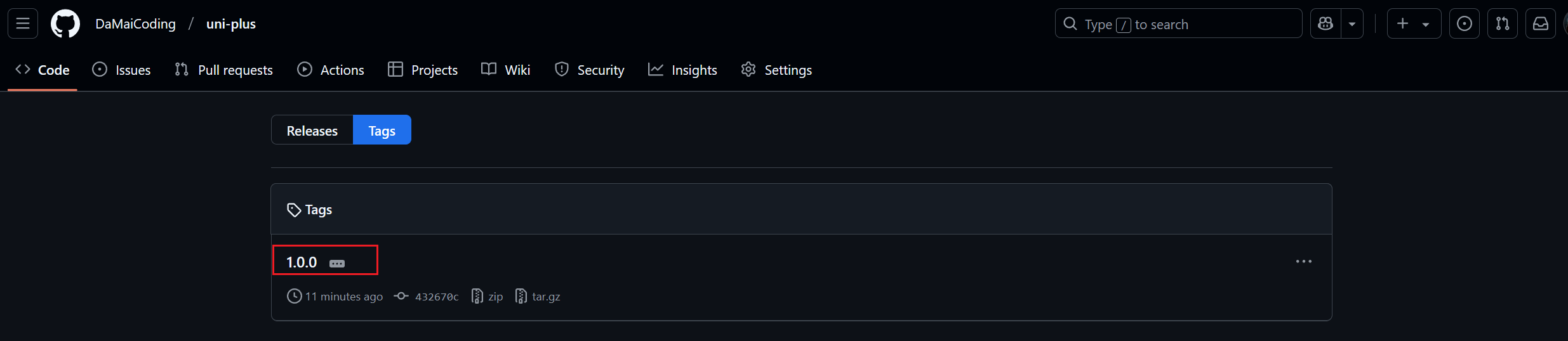 push 选择 Yes 之后,就会自动上传 CHANGELOG.md 并且帮我们打好 tag